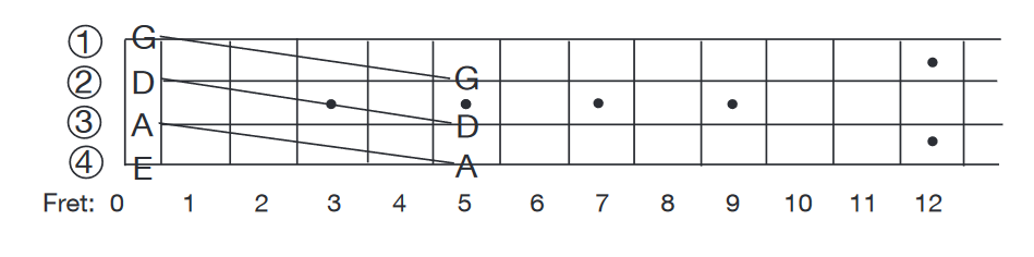 And finally, play E = 329.62 Hz on the 2nd string at the 5th fret. This will be in unison with the "open" 1st string.